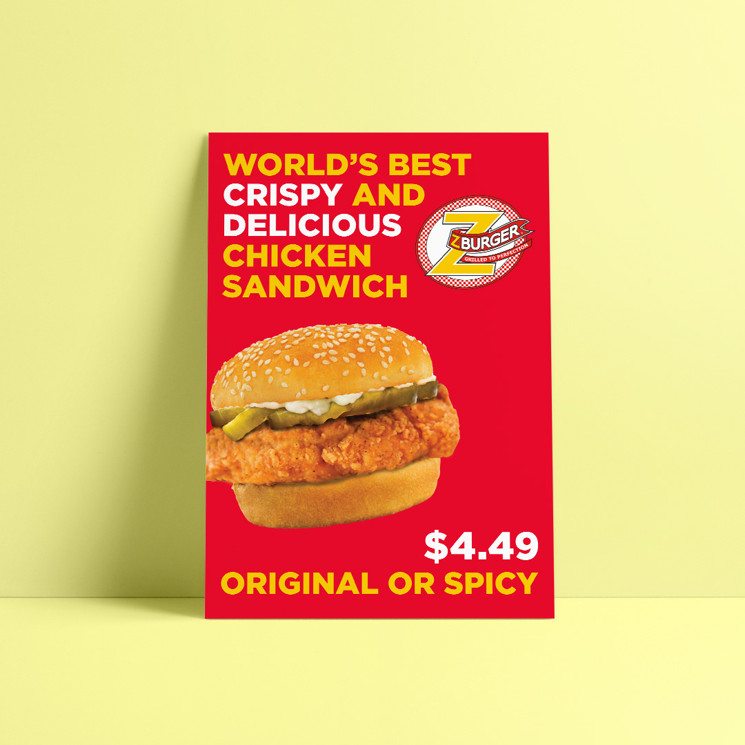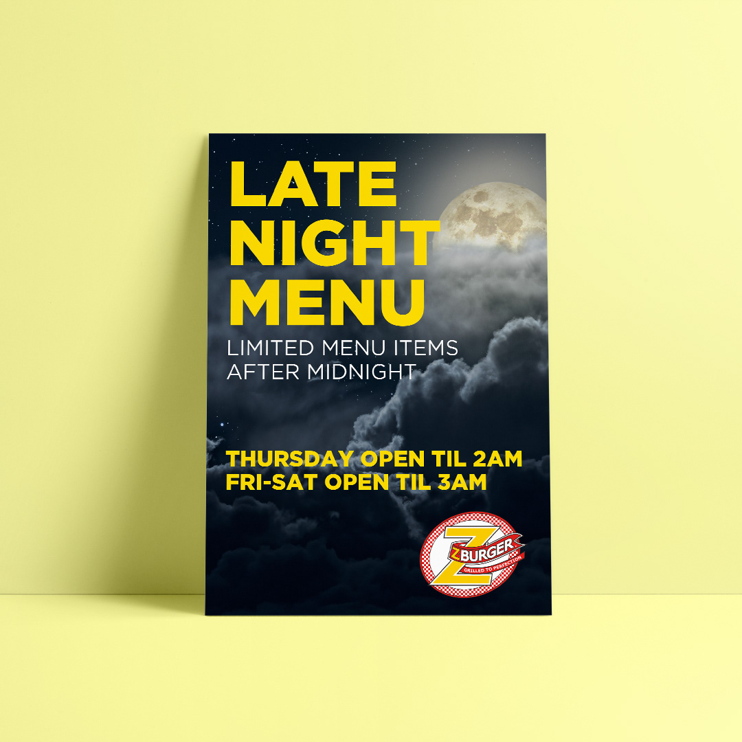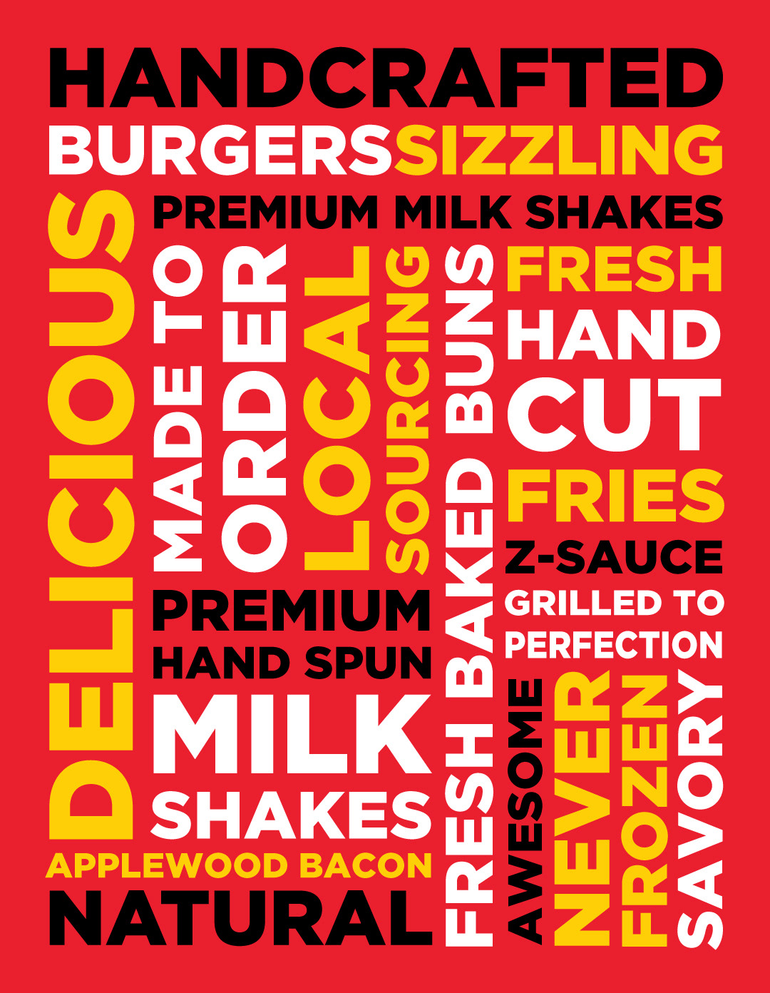 Large format graphics for a well established fast-food chain restaurant in Washington DC. The goal was to capture the attention of college students that walk or drive by daily.